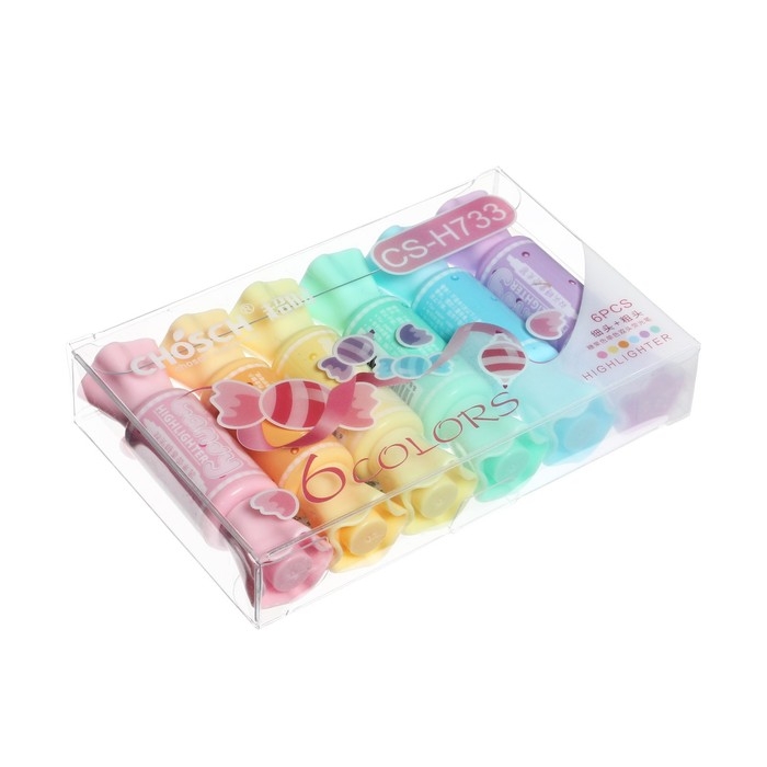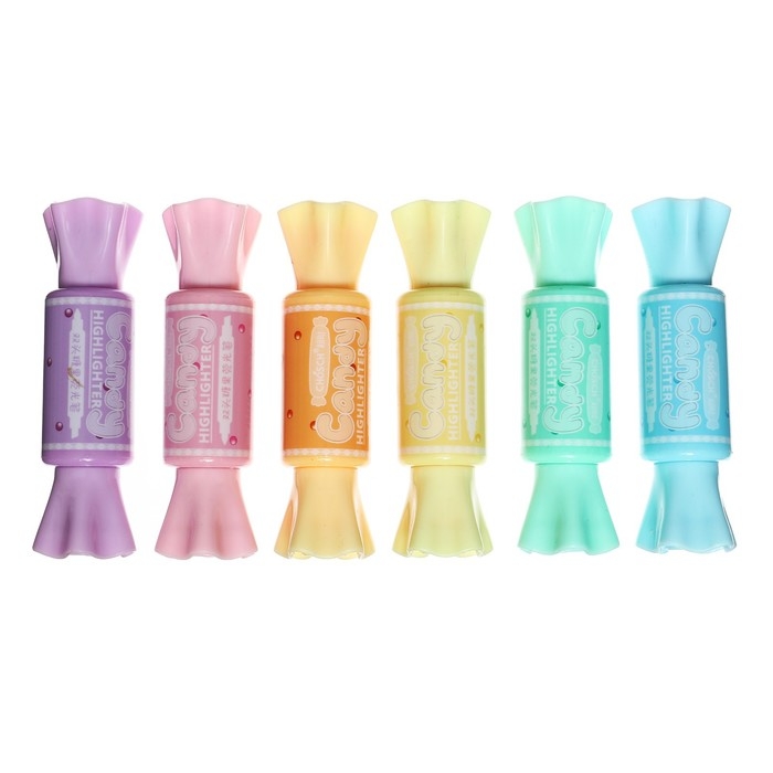 Набор маркеров-текстовыделителей 6 штук, 6 цветов, скошенные "Конфетка"