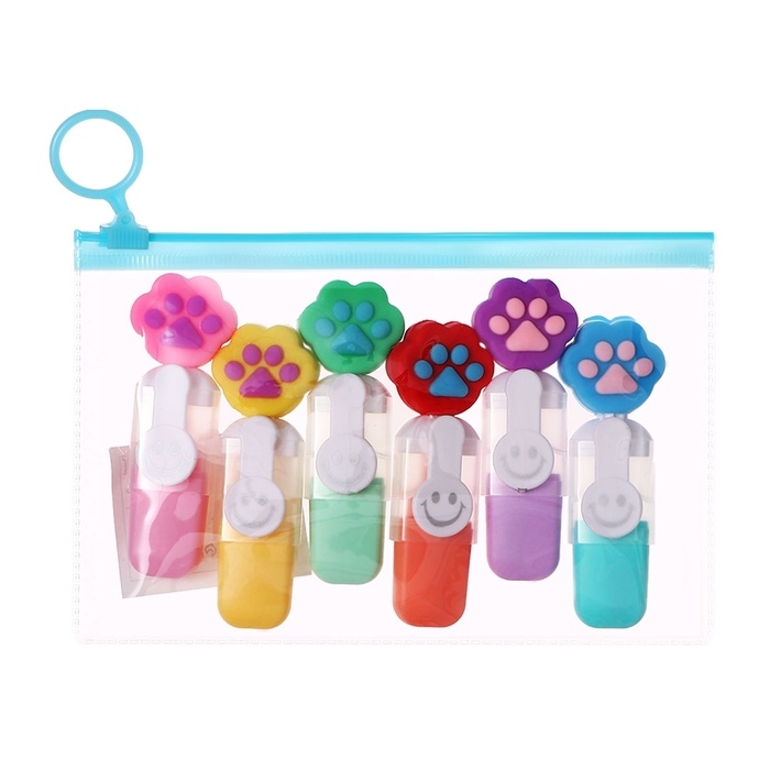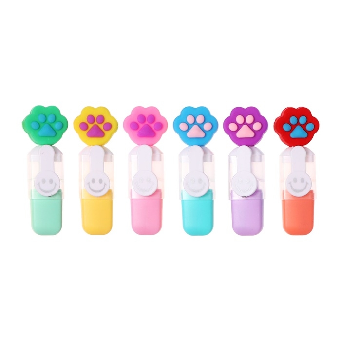 Набор маркеров текстовыделителей 6 штук 6 цветов, в пенале на молнии Лапки