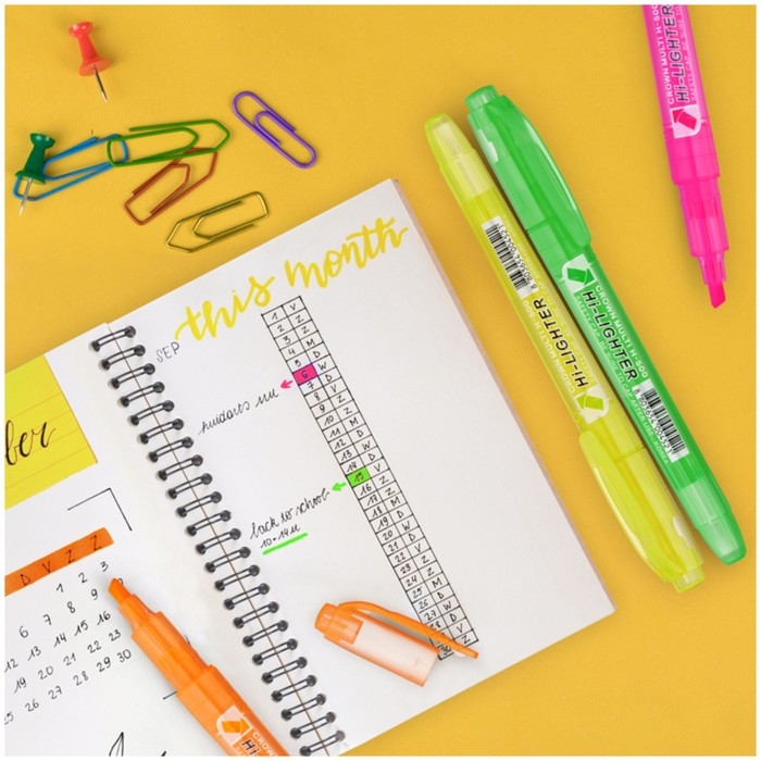 - Яркие неоновые цвета подходят для выделения в тексте, ежедневнике, тетради. Сделает акценты на самые важные моменты.