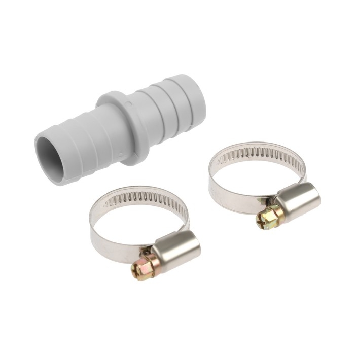 В комплект входят штуцер и два хомута из нержавеющей стали. Они обеспечивают надежное соединение и позволяют избежать протечек.