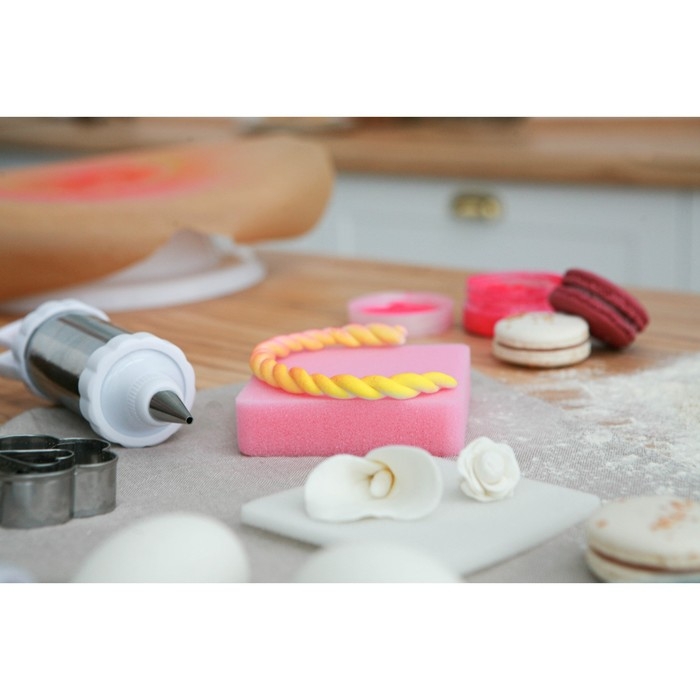 Также изделие пригодится для придания рельефа другим видам кондитерских украшений из мастики — оборкам, рюшам, буквам и цифрам.
