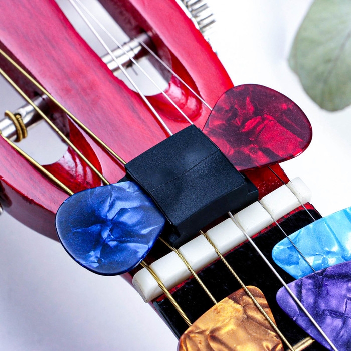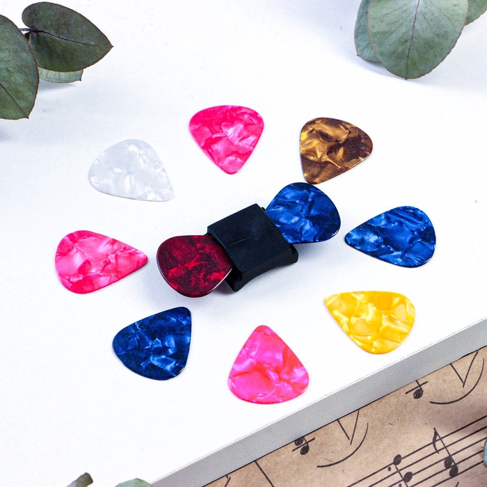 Набор медиаторов: держатель на гриф гитары + 10 медиаторов Music Life, 0,71мм, микс