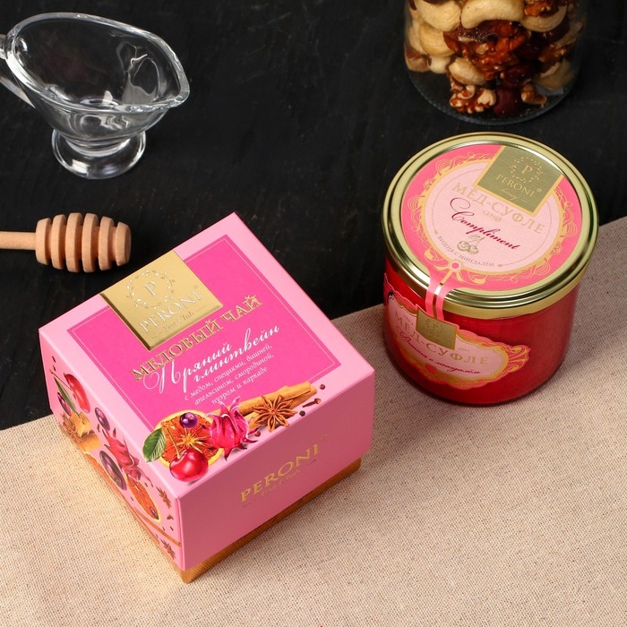 Набор Медовый пунш (Мёд-суфле Вишня с миндалем + чай Пряный глинтвейн в зол.упаковке)