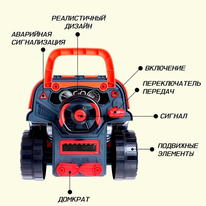 Ребёнок с помощью отверток, имеющихся в наборе, сможет сам собрать игрушку.