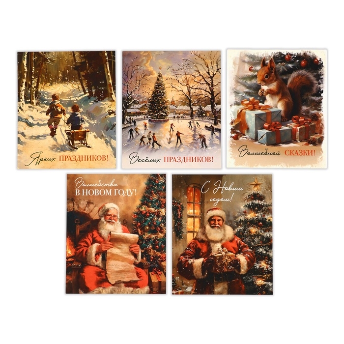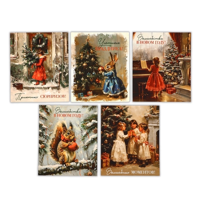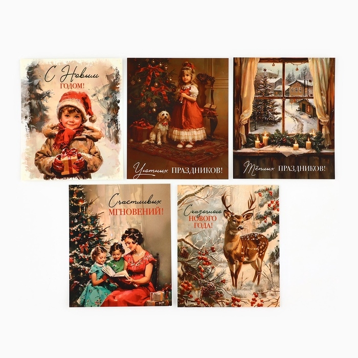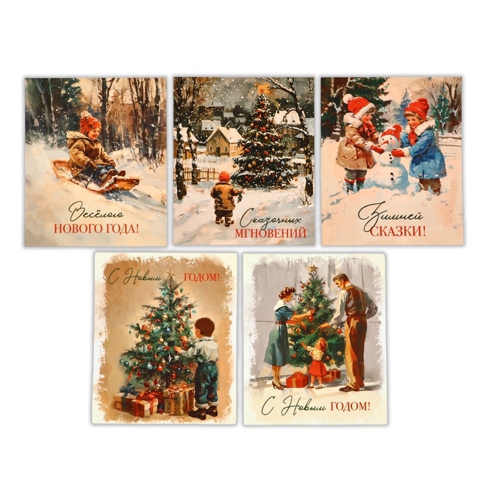 Набор мини-открыток новогодних «С Новым годом!» ретро, 35 штук, 8 x 10 см, Новый год