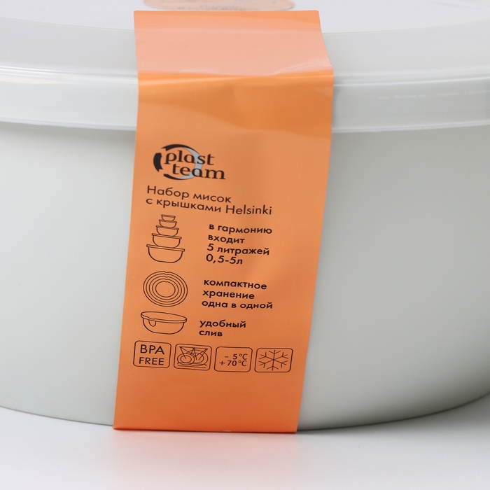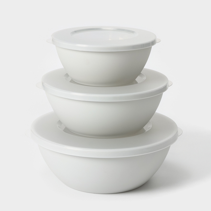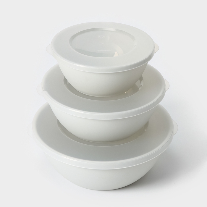 Набор мисок с крышкой HELSINKI, 3 шт: 1 л, 2 л, 3 л, цвет пепельный жемчуг