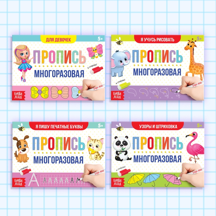 Набор многоразовых прописей с маркером «Для девочек», 4 шт. по 12 стр.