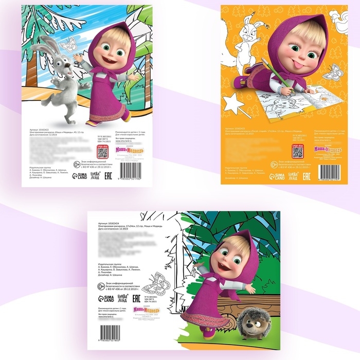 Набор многоразовых раскрасок, 3 шт., Маша и Медведь
