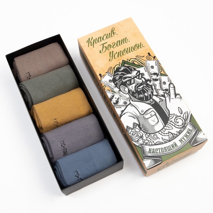 Набор мужских носков KAFTAN "Красив, богат, успешен" 5 пар, р-р 39-41