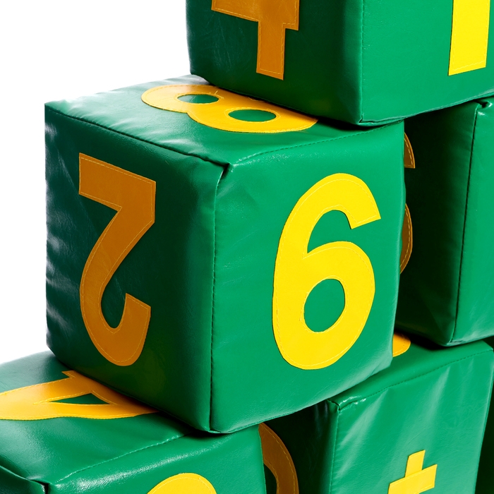 Размер одного элемента: 20 × 20 × 20 см. Качественная винилискожа и упругий поролон внутри кубиков гарантируют безопасную и приятную игру.