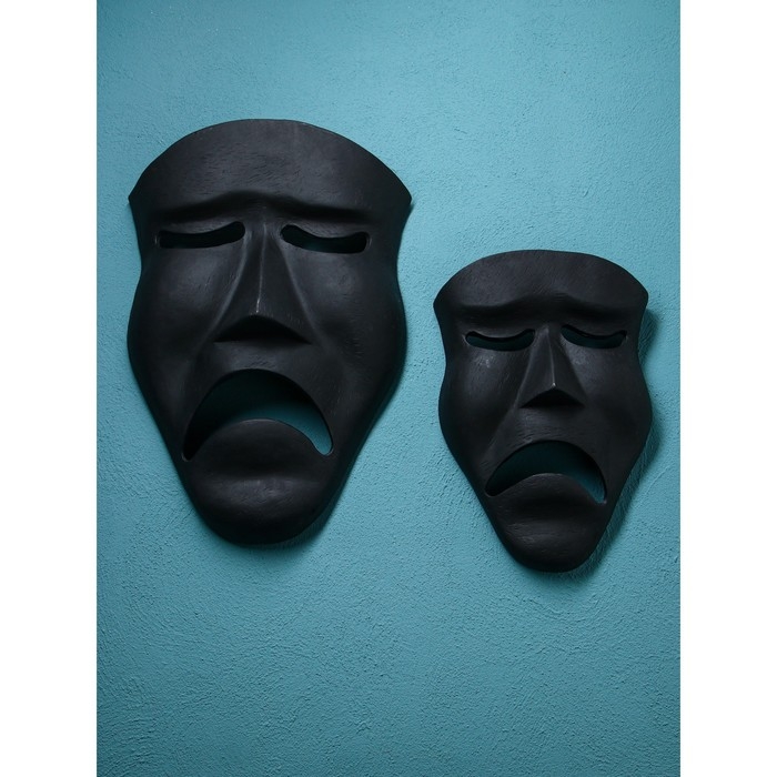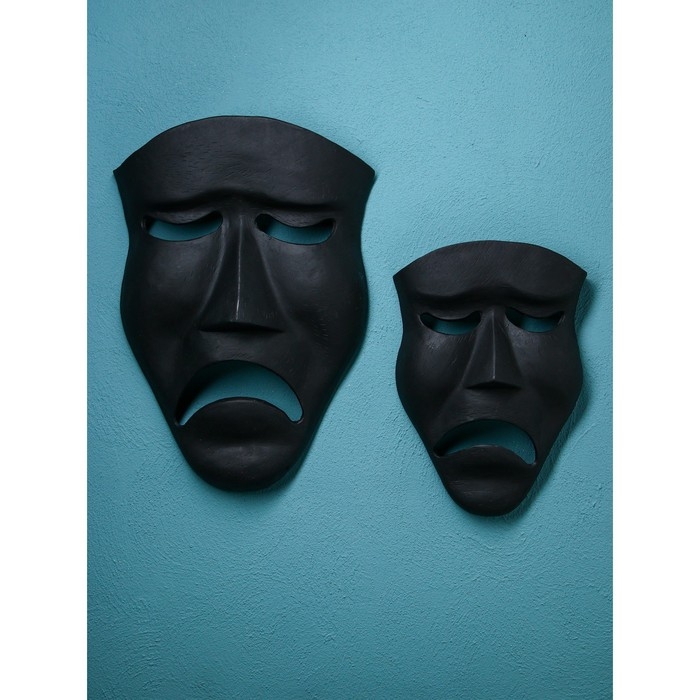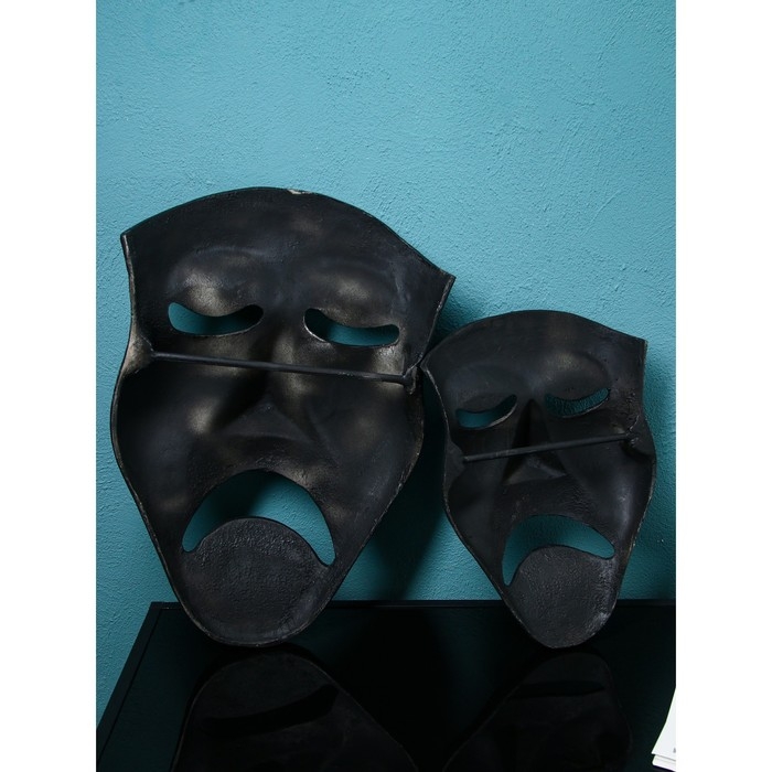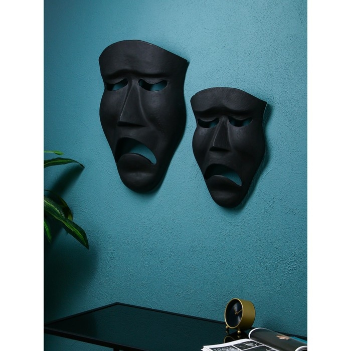 Набор настенных фигур «Маска грустная», полистоун, 60 см, 2 шт, цвет чёрный матовый