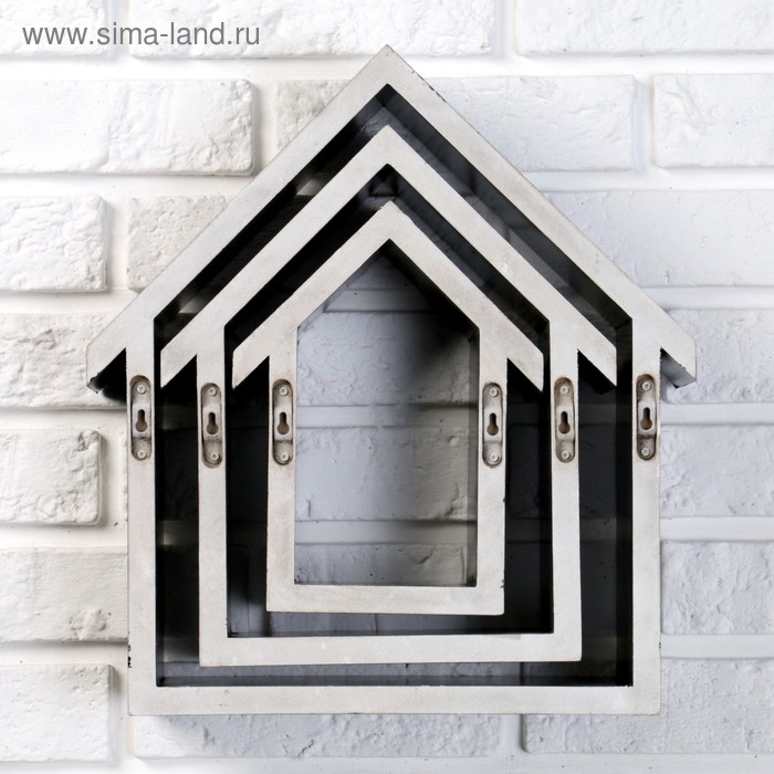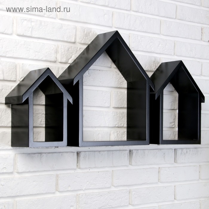 Набор настенных полок "Домики" черные, 3шт, (36*30см, 31*23см, 26*17см)