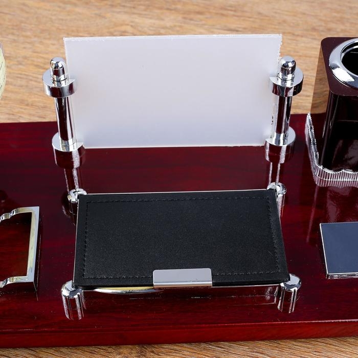 Набор настольный 6в1 с визитницей и часами, красное дерево