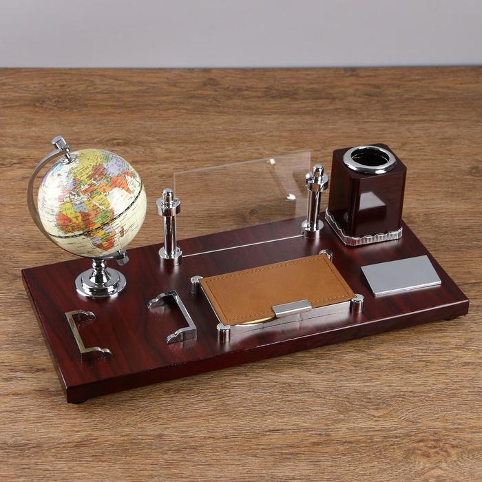Набор настольный 5в1 (глобус,подст. п/ручки,подст.д/бумаг, фоторамка,скреп) микс