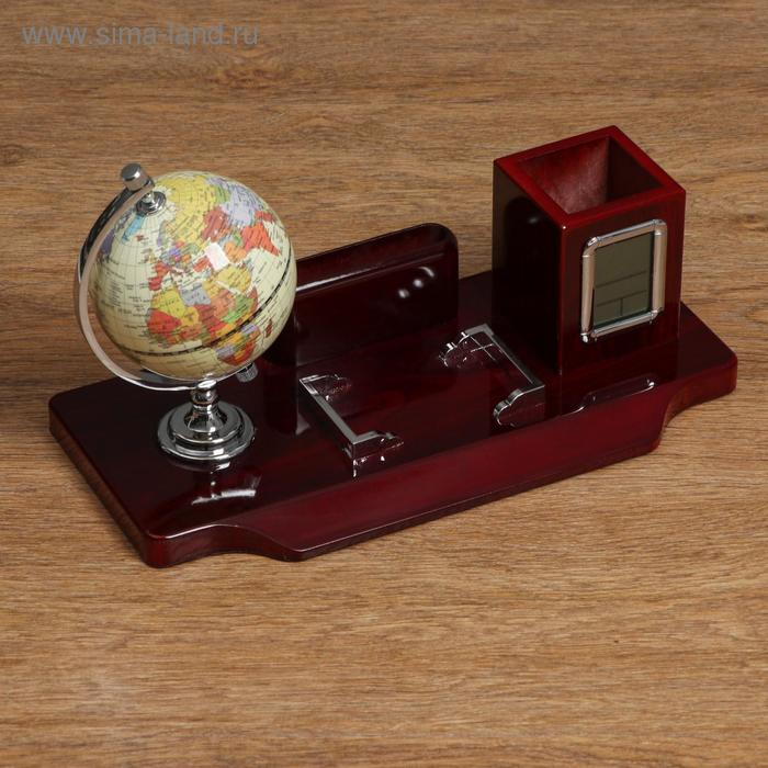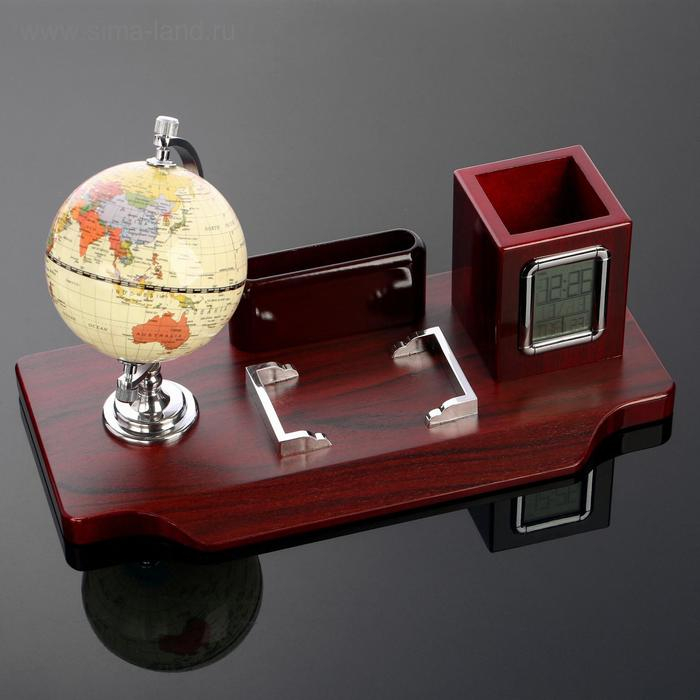 Набор настольный 6в1 с визитницей и часами, красное дерево