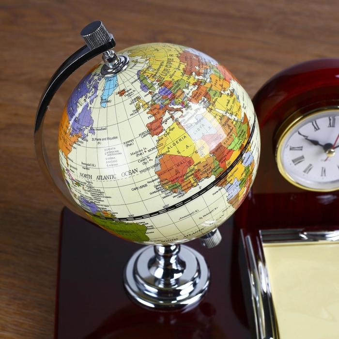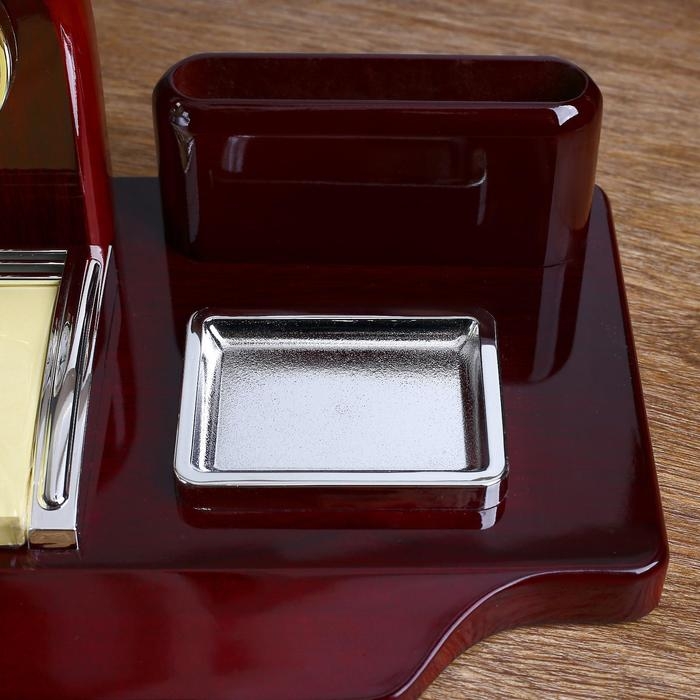 Набор настольный 7в1 с визитницей и часами, 19х24х16,5 см, вишня