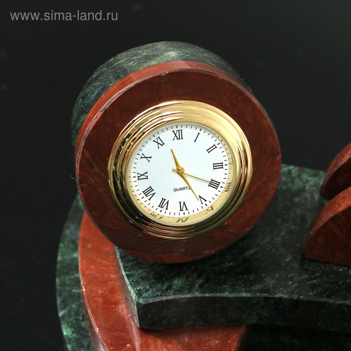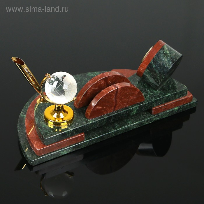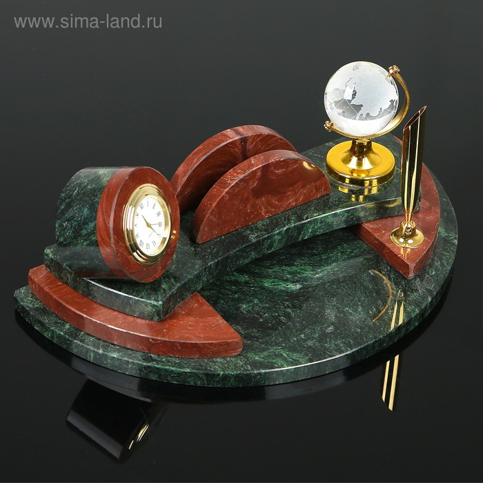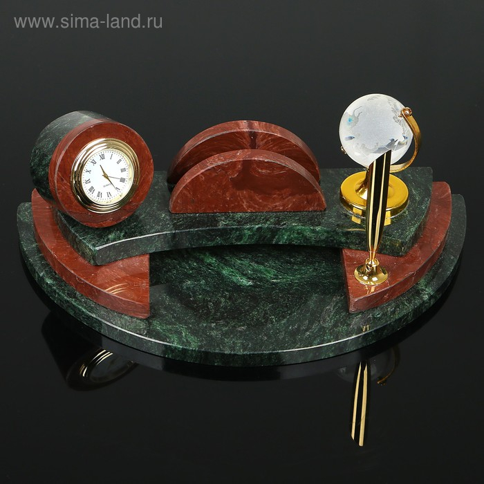 Набор настольный "Полукруг с часами", 25х13х10 см, змеевик, креноид