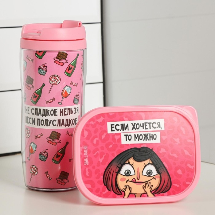 Набор «Ни в чём себе не отказывай»: термостакан 350 мл, ланч-бокс 500 мл