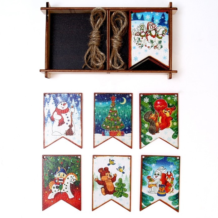 Набор «Новогодние флажки» состоит из 12 уникальных деталей, каждая из которых оформлена в стиле зимнего волшебства. Этот набор идеально подойдёт для создания праздничной атмосферы и украшения вашего дома или офиса. Все элементы выполнены из высококачественных материалов, что обеспечивает их долговечность и безопасность.