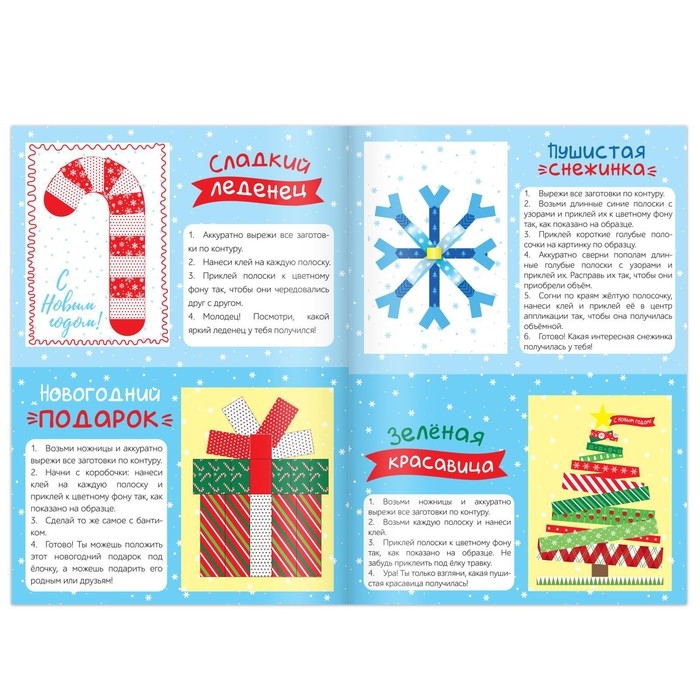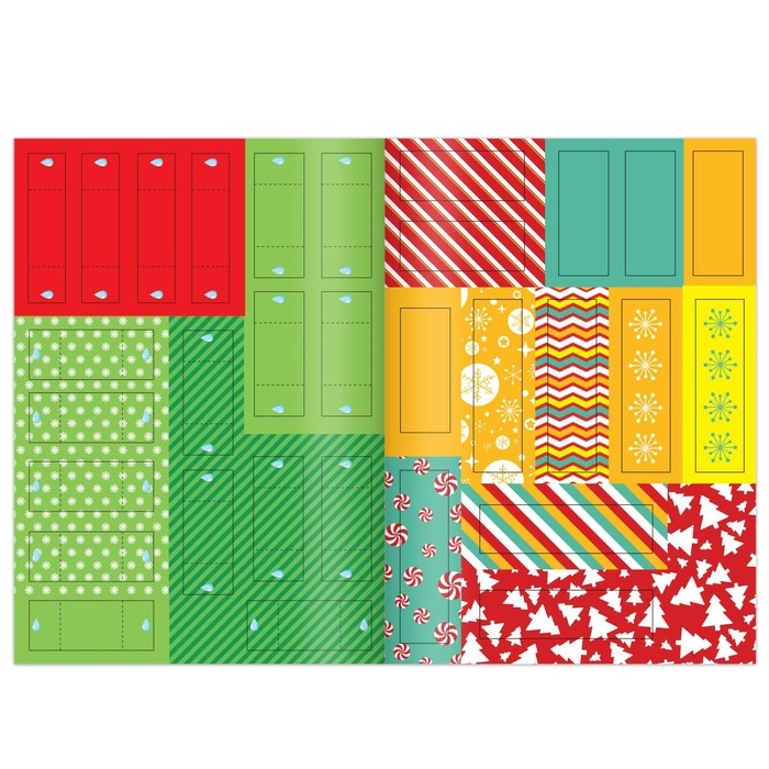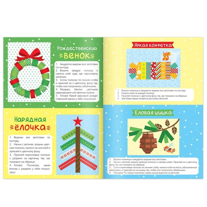 С набором новогодних аппликаций ребёнок смастерит праздничные украшения для ёлочки и интерьера и подарки для близких.