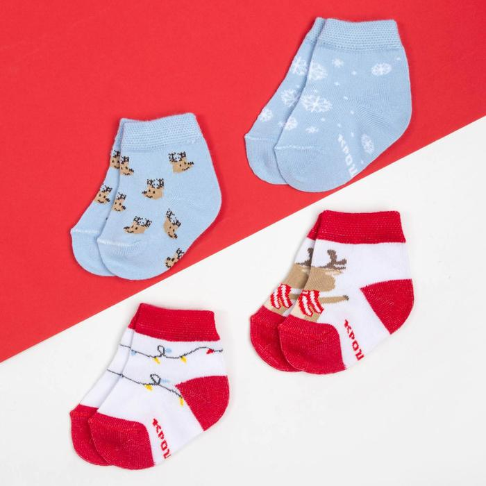 Набор новогодних детских носков Крошка Я «Оленёнок», 4 пары, 6-8 см