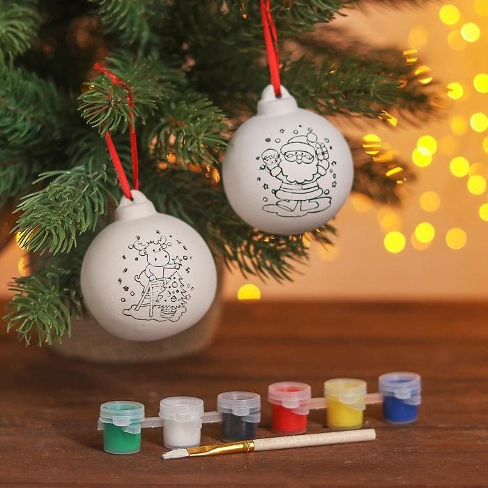 Набор новогодних шаров под раскраску «Пара №6», 2 шт., с подвесом, 3+