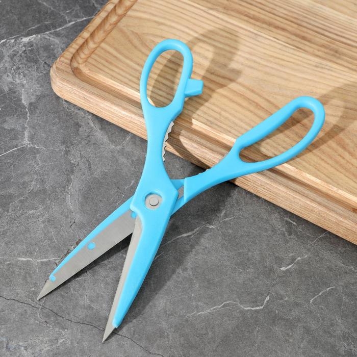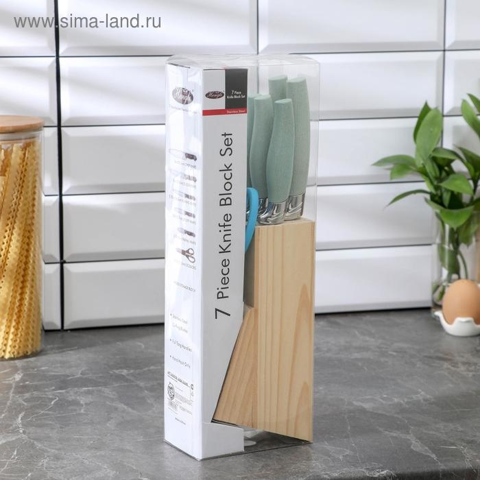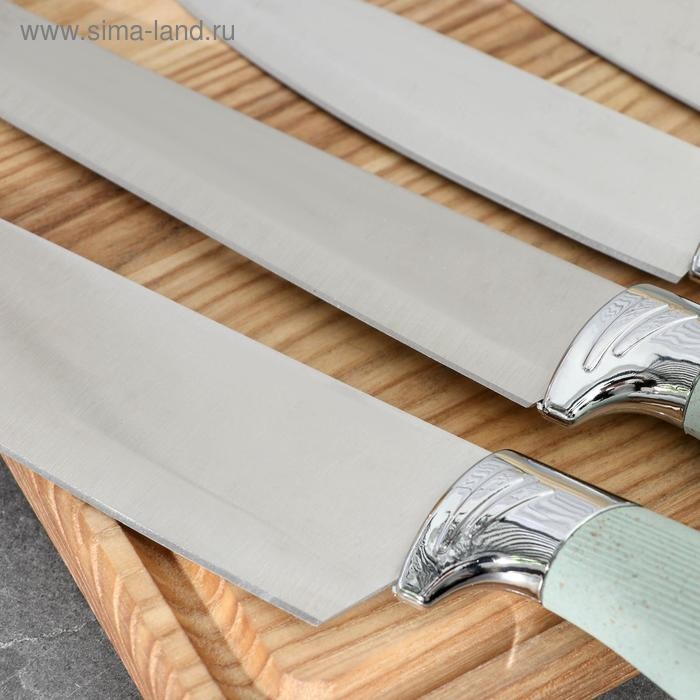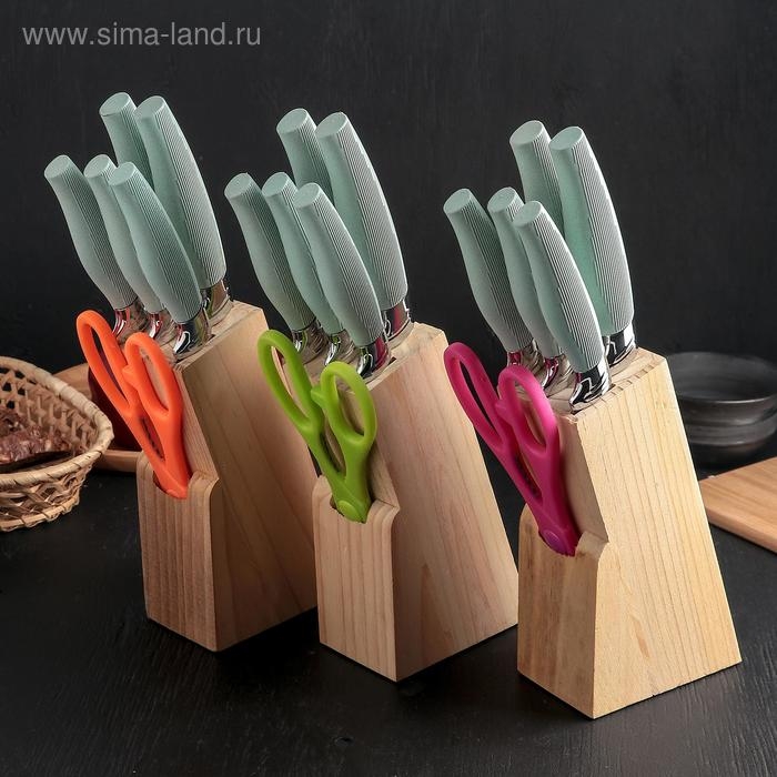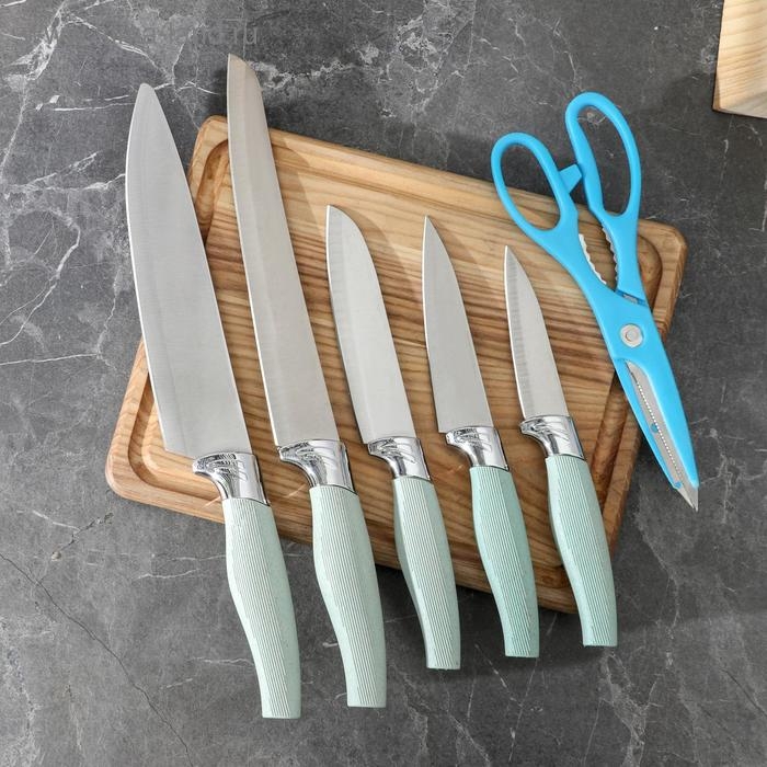 Набор ножей кухонных на подставке, 6 предметов: 5 ножей 8,5 см, 12 см, 12 см, 19,7 см, 19 см, ножницы, цвет голубой