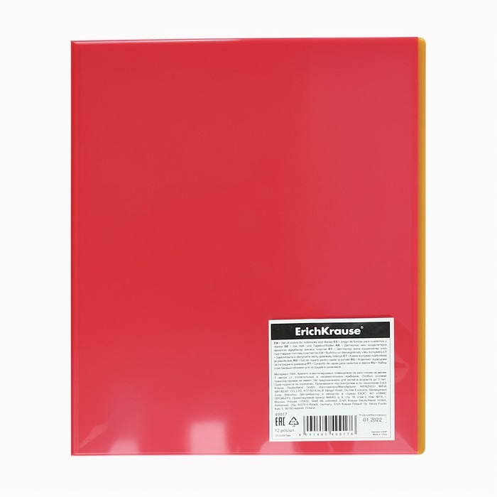 Набор обложек ПВХ 12 шт, 212 х 347 мм, 150 мкм, ErichKrause, Glossy Neon, для тетрадей и дневников, фиксированная, глянцевые, микс
