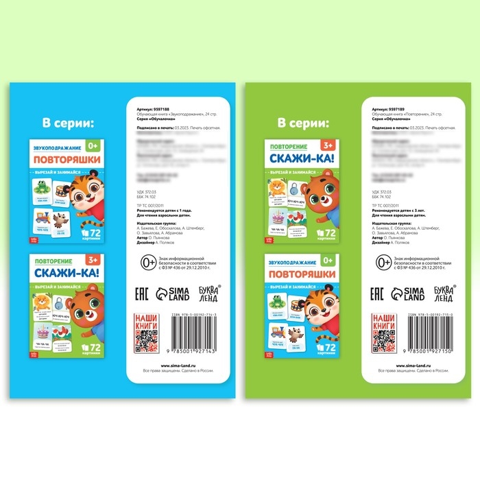 Набор «Звукоподражание и чистоговорки» представлен двумя книгами: