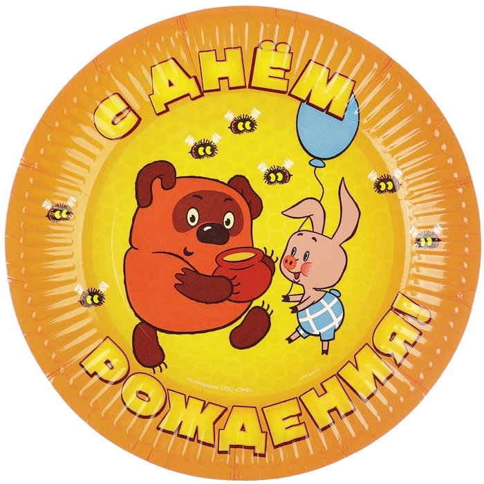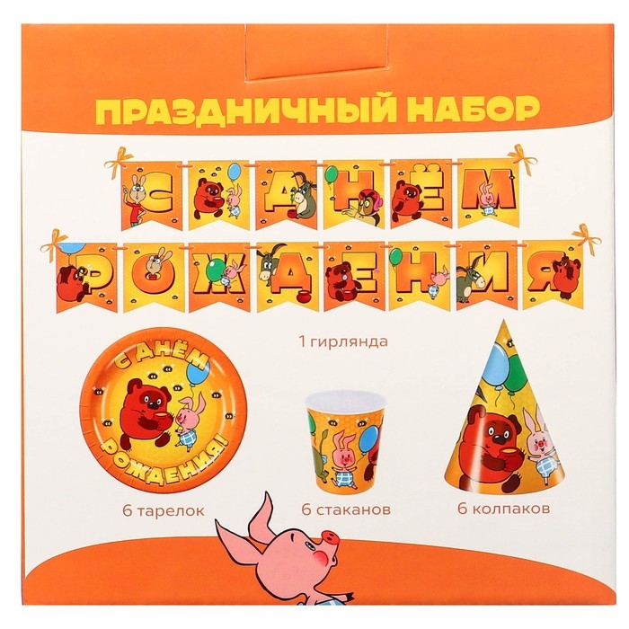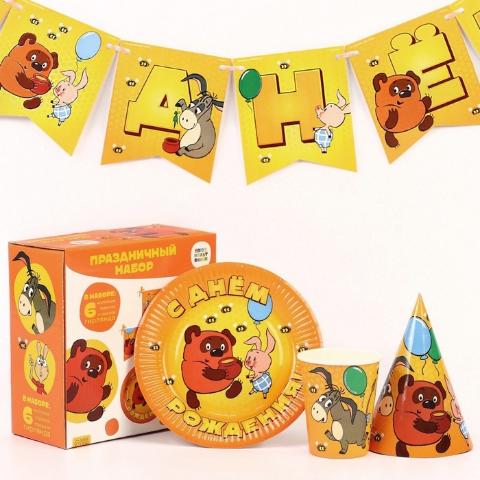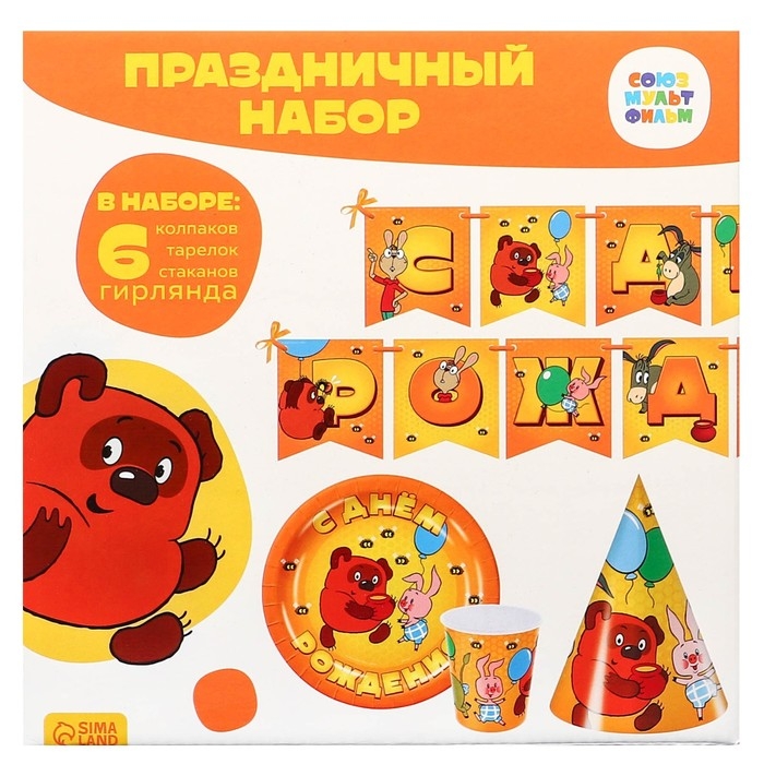 Набор одноразовой бумажной посуды, на 6 персон "С днем рождения!", Союзмультфильм