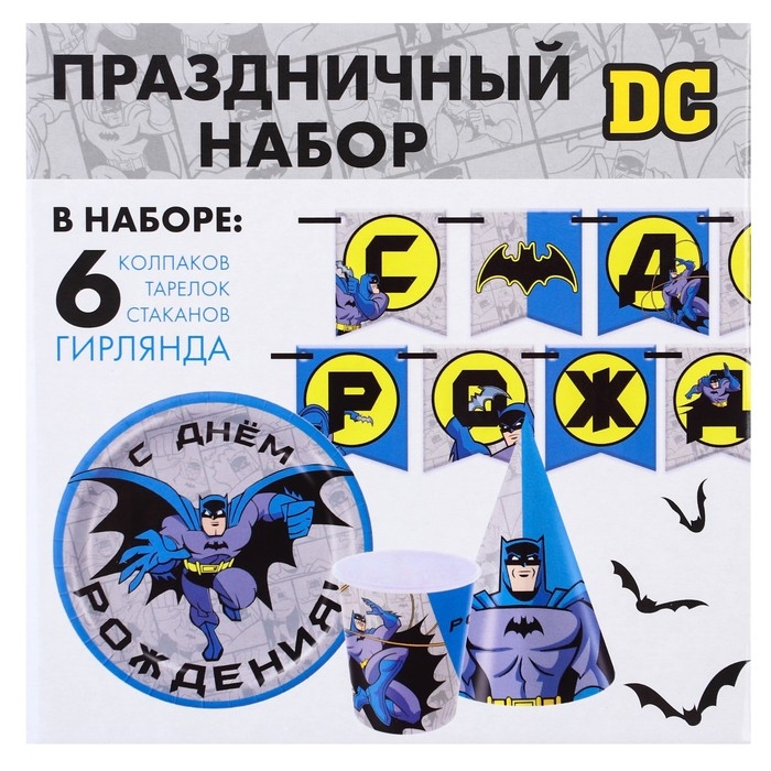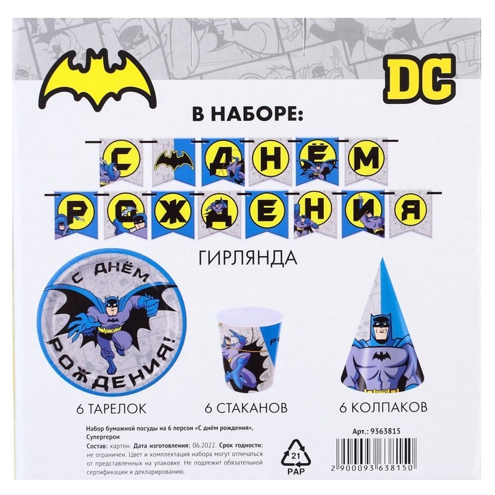 Набор одноразовой бумажной посуды, на 6 персон "С Днем Рождения", Супергерои