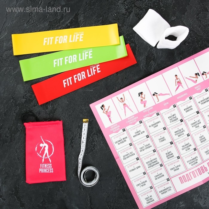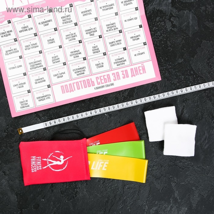 Набор ONLITOP «Подготовь себя»: фитнес-резинки 3 шт., чехол, измерительная лента, напульсники, календарь тренировок