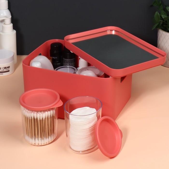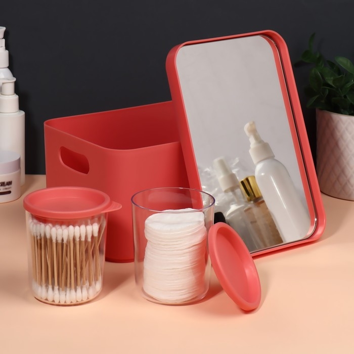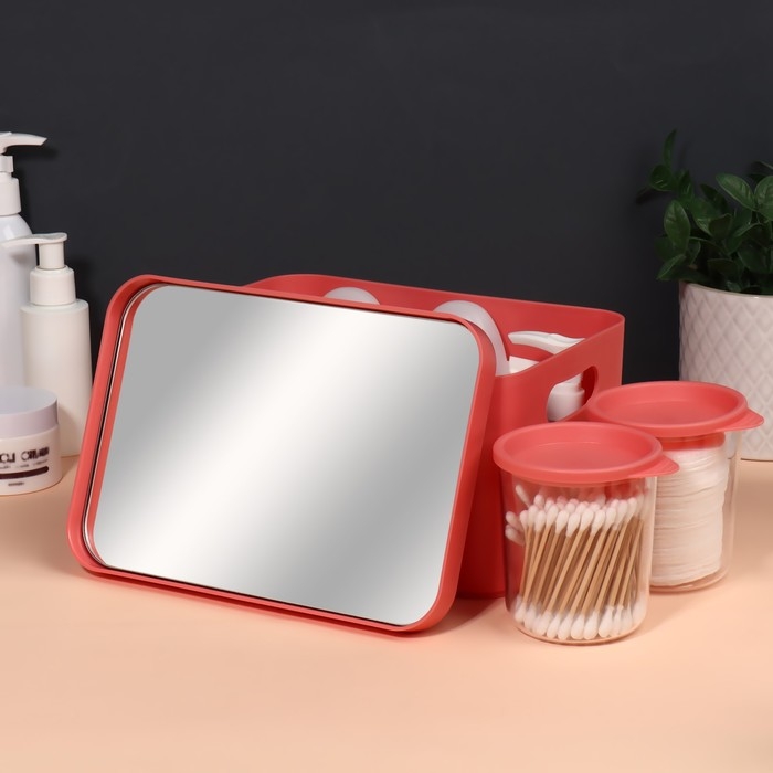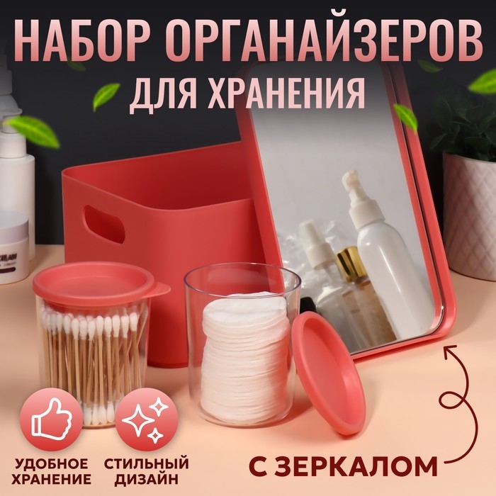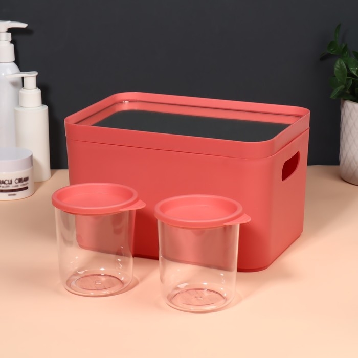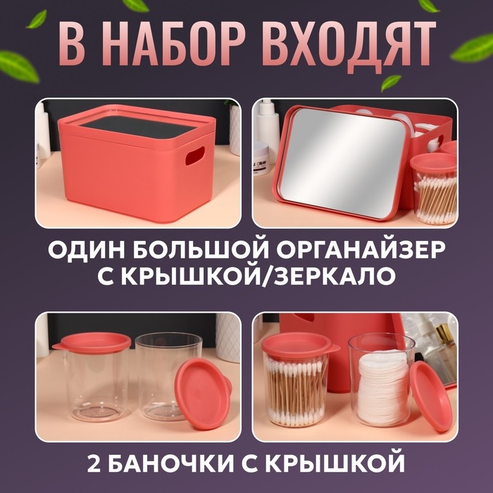 Набор органайзеров для хранения косметических принадлежностей «Eva», 22,8 × 15,9 × 13,8 см, с зеркалом, цвет розовый