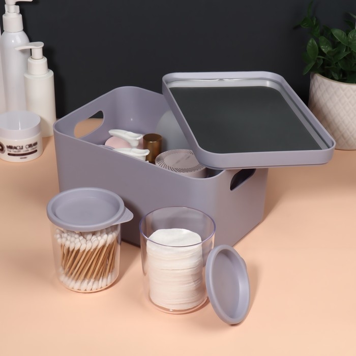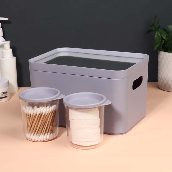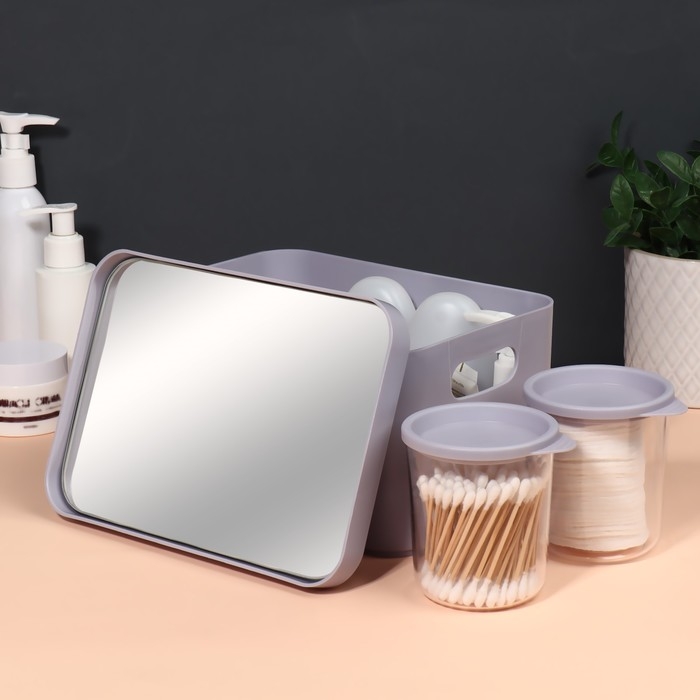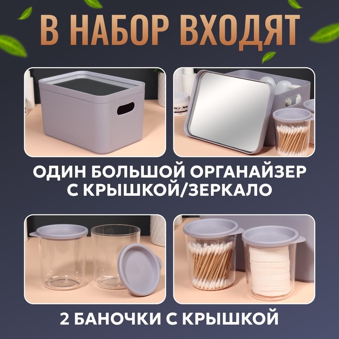 Набор органайзеров для хранения косметических принадлежностей «Eva», 22,8 × 15,9 × 13,8 см, с зеркалом, цвет сиреневый