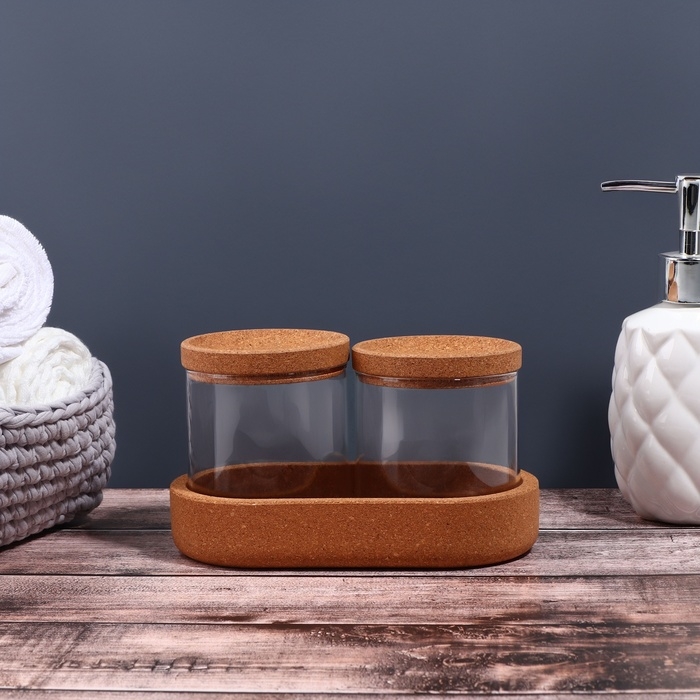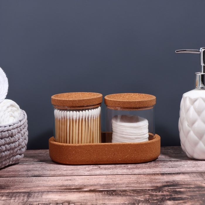 Набор органайзеров для ватных палочек и дисков, 17,5 × 10 × 10 см цвет прозрачный/коричневый