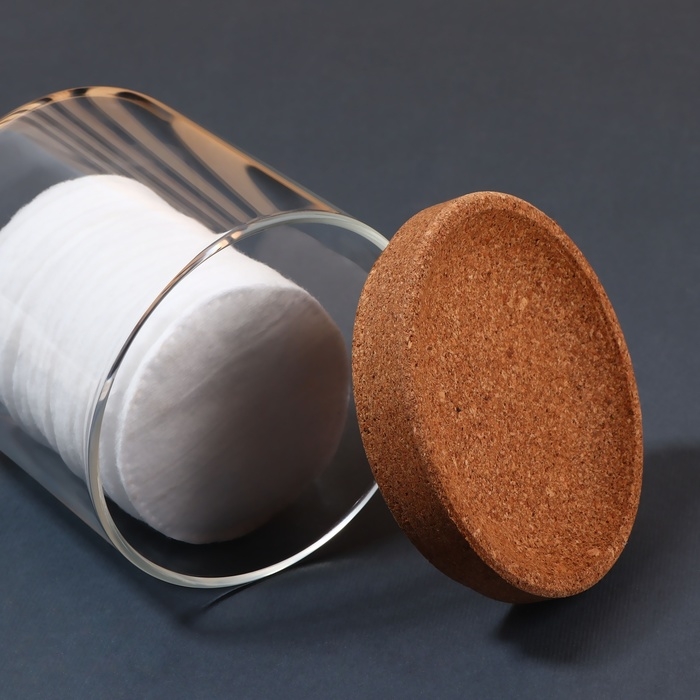 Органайзер для хранения ватных палочек «BAMBOO», с крышкой, d = 9,5 × 9,7 см, в картонной коробке, цвет прозрачный/коричневый