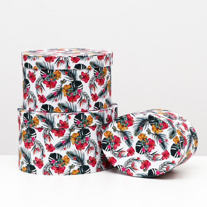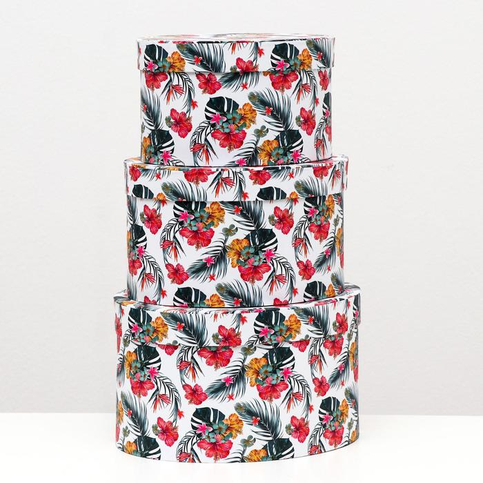 Набор овальных коробок 3 в 1 "Разноцветные цветы", 27 x 21.6 x 15.3 - 21 x 15.2 x 12