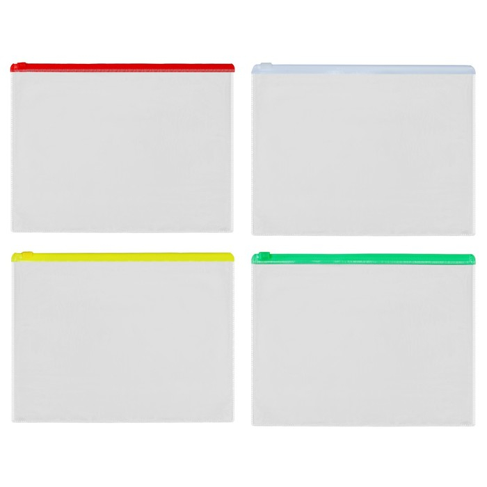 Набор папка-конверт на молнии 12 штук, формат А4 120мкр прозрачная, размер молнии 33 х 23,7см