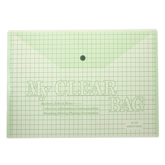 Набор папок-конвертов на кнопке А4, 120 мкр, 20 штук, клетка тонированная зелёная