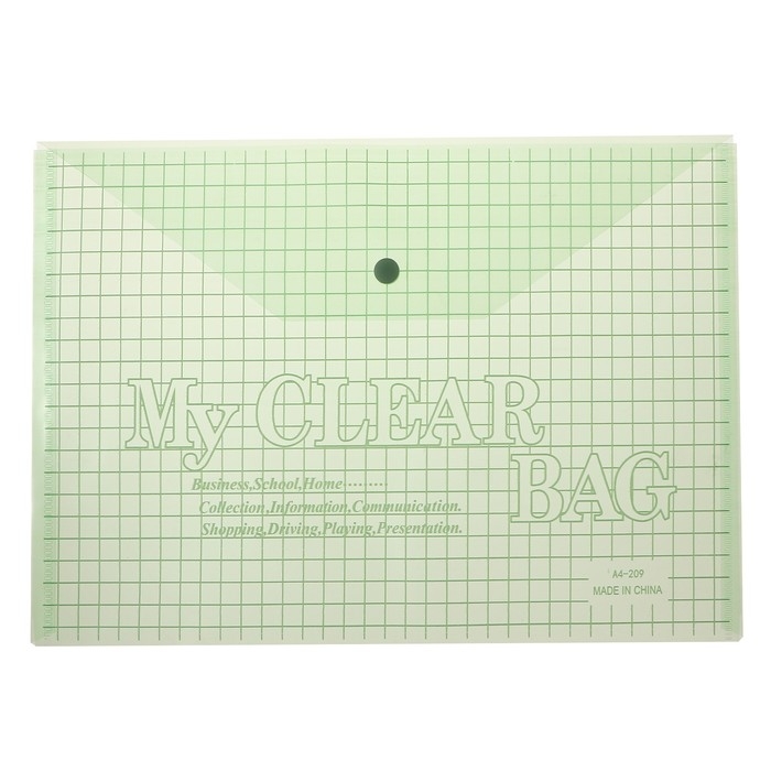 Набор папок-конвертов на кнопке А4, 140 мкр, 20 штук, клетка тонированная зелёная
