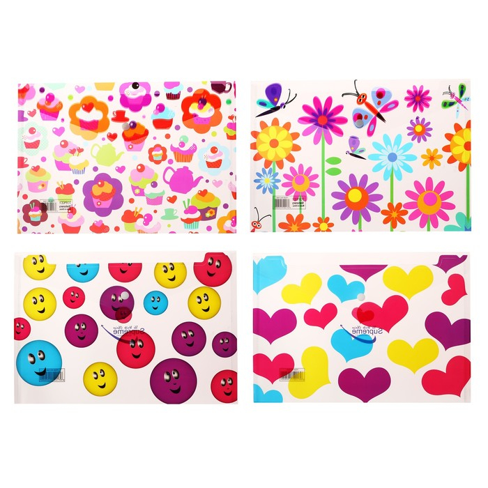 Набор папок-конвертов на кнопке А4, 160 мкр, 12 штук, МИКС