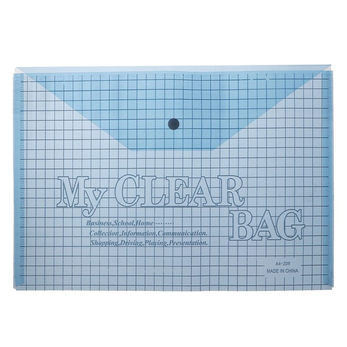 Набор папок-конвертов на кнопке А4, 180 мкр, 12 штук, клетка тонированная синяя