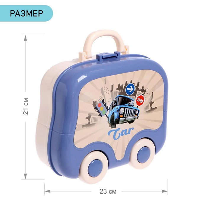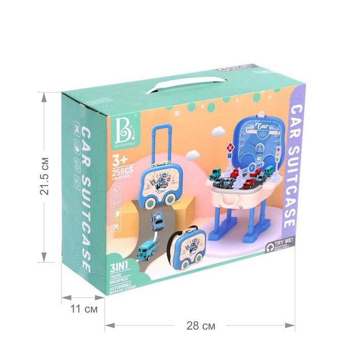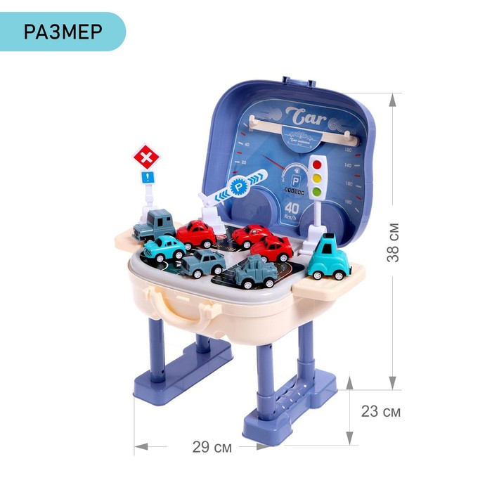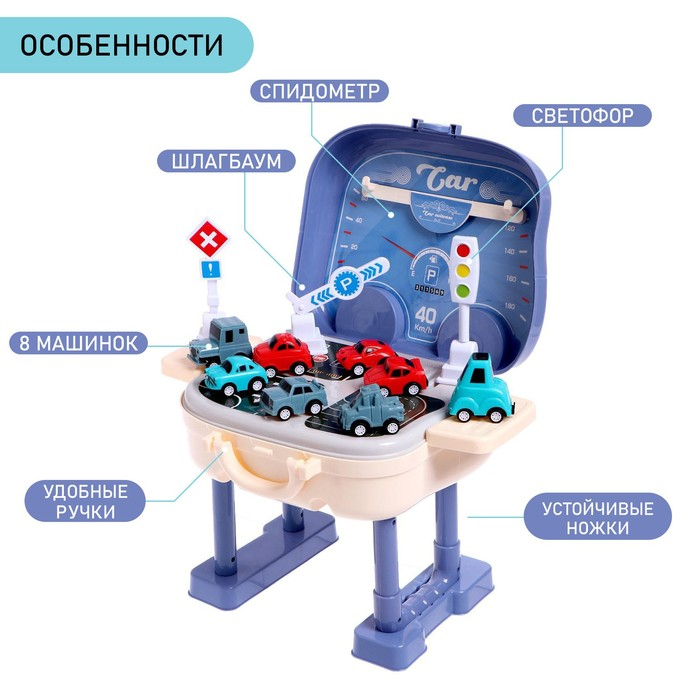 Ваш малыш увлекается автомобилями? Тогда он по достоинству оценит игровой набор в чемодане. Только представьте: его ждёт большое пространство для игры плюс чемодан для переноски.