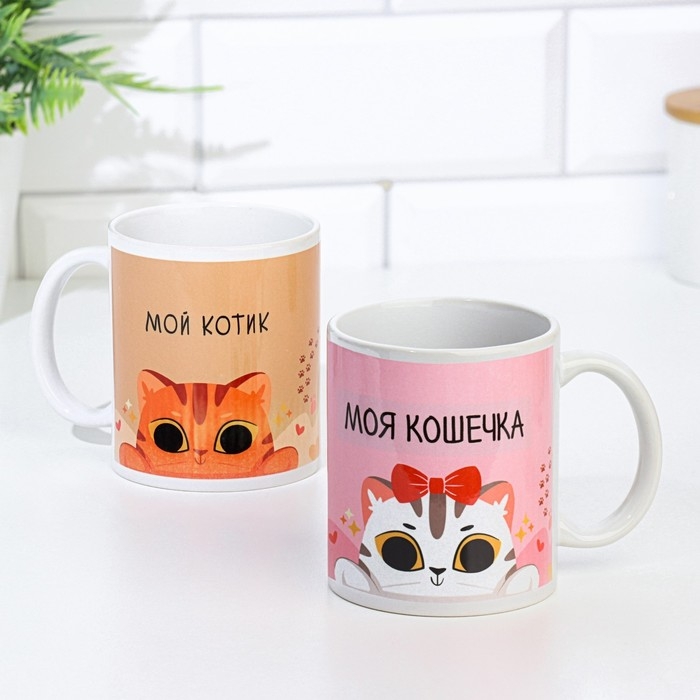 Набор парных кружек сублимация "Лучшим котикам", 320 мл, с нанесением