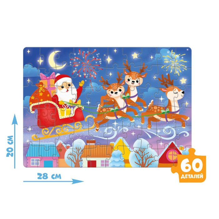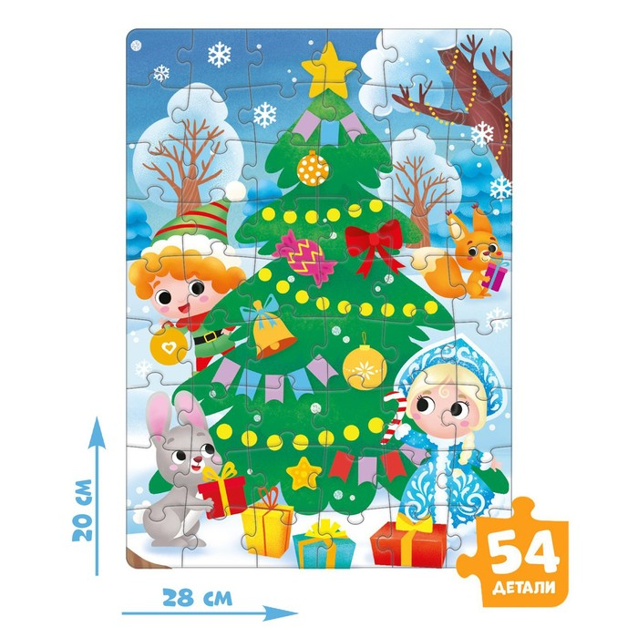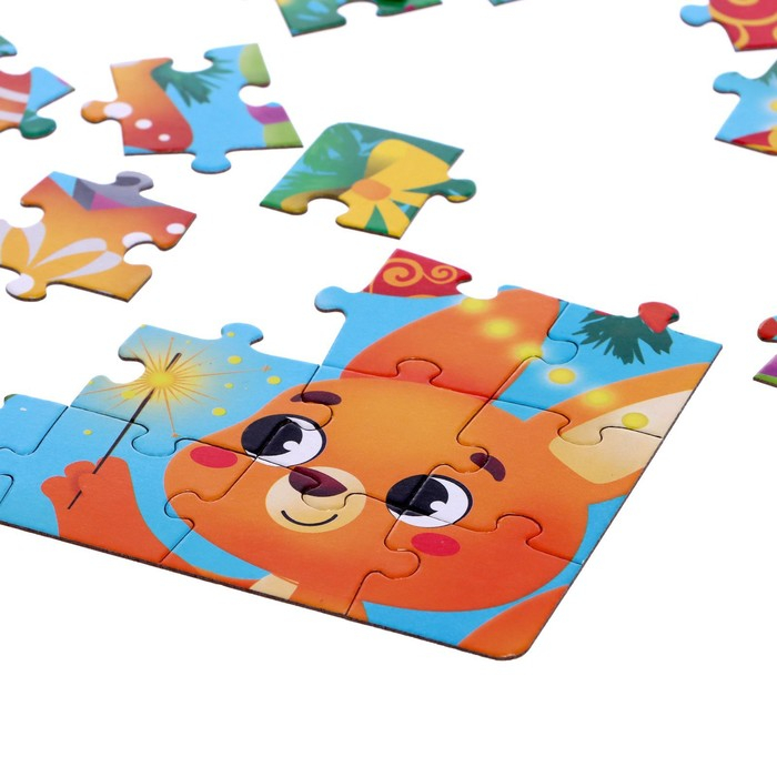 - Малышу предстоит собрать целых 3 пазла с новогодним сюжетом и милыми персонажами.