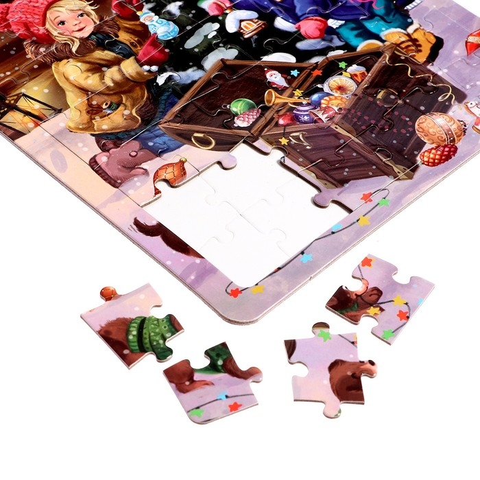 Набор пазлов в рамке «Здравствуй, Новый год» — то, что нужно для полезного и интересного досуга! Такой подарок поможет ребёнку скрасить ожидание праздника, а также потренировать мелкую моторику, внимательность, логическое мышление и память. Картонная подложка не даст изображению рассыпаться и сохранит собранную картинку до следующей игры.