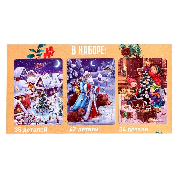 Набор пазлов в рамке «Здравствуй, Новый год», 35, 42, 54 детали, в пакете