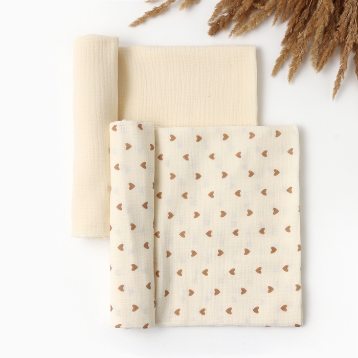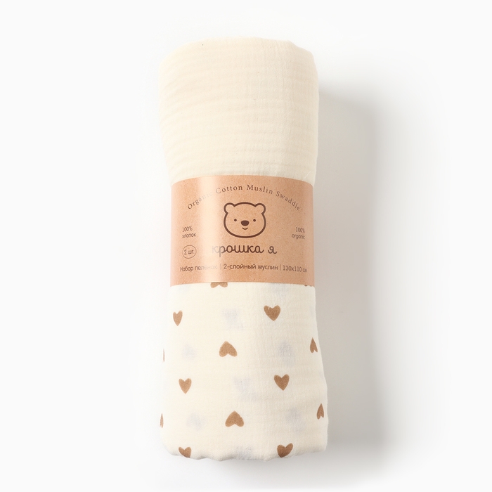 Набор пеленок Крошка Я Heart, 130х110см - 2 шт, муслин, 100% хлопок
