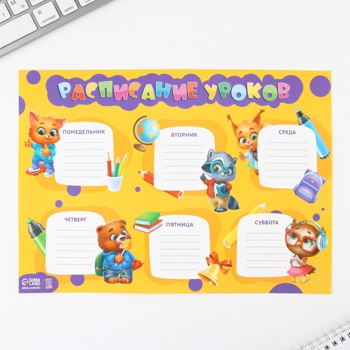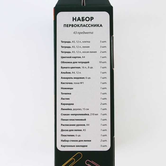 Альбом, Закладка, Карандаш, Кисть, Краски, Ластик, Линейка, Ножницы, Обложка для тетради, Пенал, Пластилин, Расписание, Тетрадь, Точилка, Цветная бумага, Цветной картон