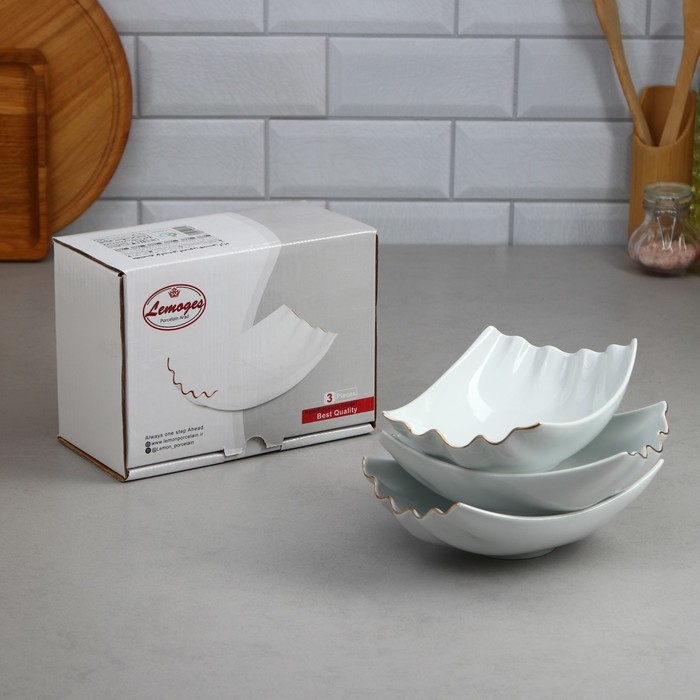 Набор пиал, 3 предмета, малые, золотая обводка, фарфор, Иран
